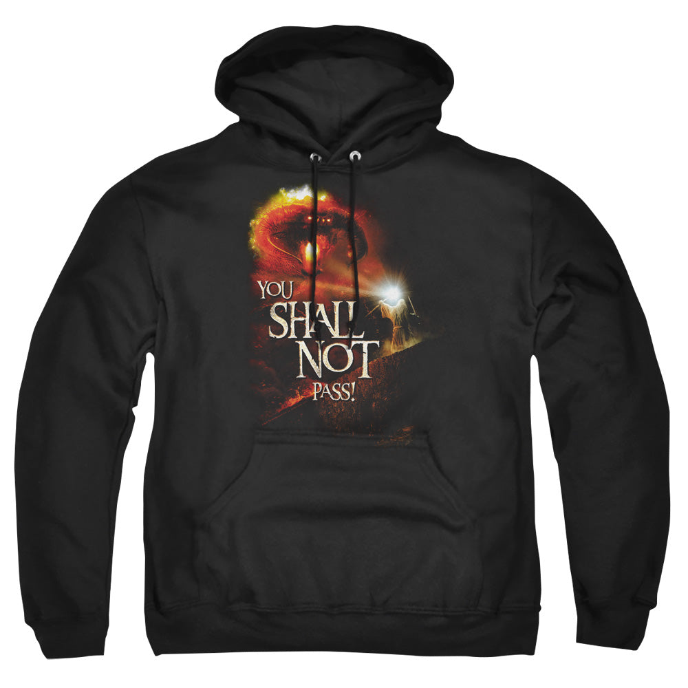 Step into the enchanting world of Middle-earth with our Lord Of The Rings Officially Licensed Apparel, meticulously crafted for true fans and epic adventurers. Each piece in this exclusive collection is more than just clothing; it's a tapestry of storytelling, woven with the magic of J.R.R. Tolkien's unparalleled universe. With designs that pay homage to the timeless tales of heroism and friendship, our apparel captures the essence of Middle-earth with authenticity and flair. Whether you're gearing up to journey through the Shire or face the peaks of Mount Doom, our garments ensure you do so in legendary style. Embrace your inner hobbit, elf, or wizard, and elevate your wardrobe with pieces as iconic as the One Ring itself. Venture boldly into your next adventureƒ??wear the legend!Lord Of The Rings You Shall Not Pass Mens Hoodie Black