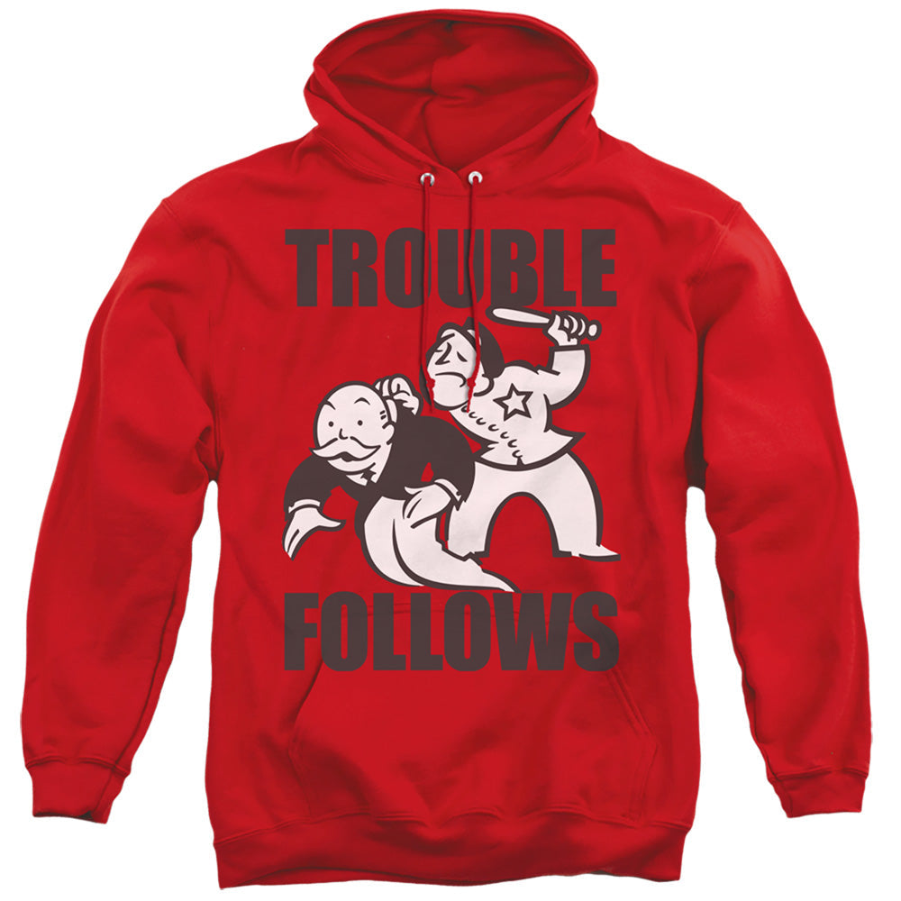 Monopoly Trouble Follows Evergreen Mens Hoodie Red