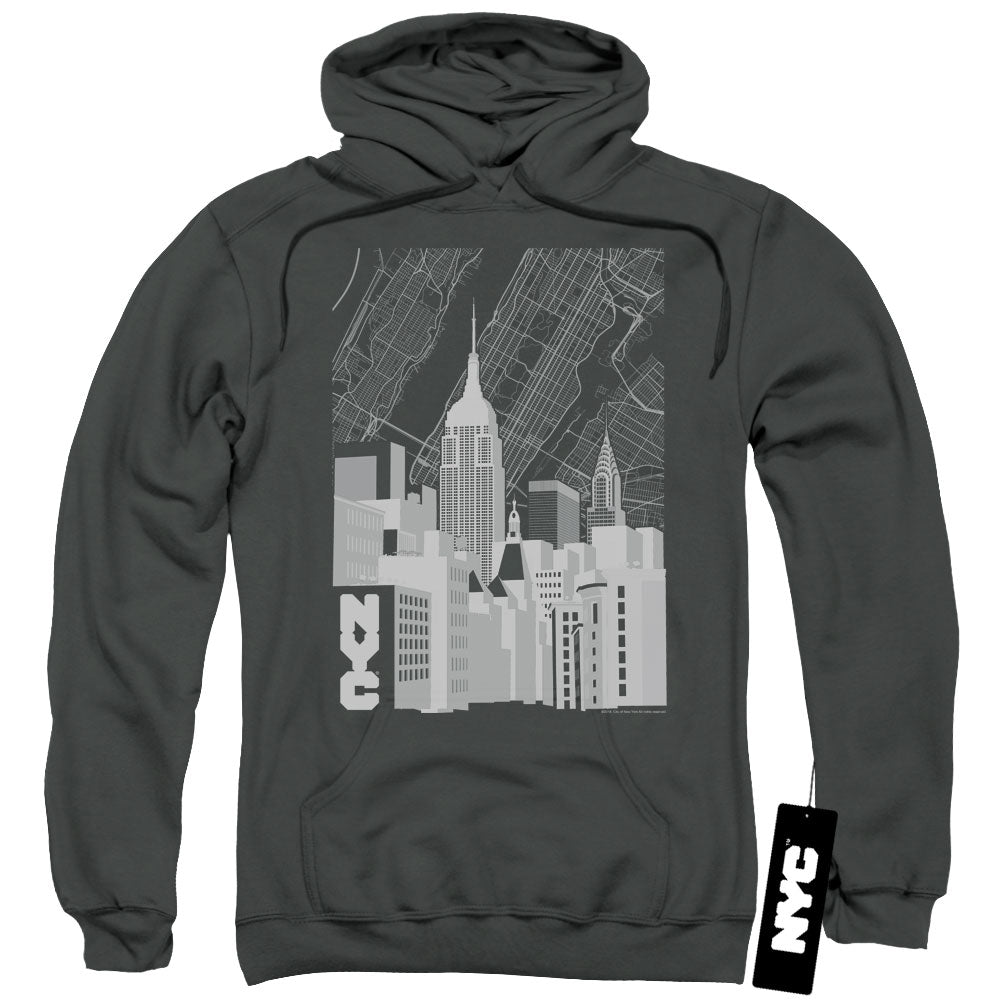 New York City Manhattan Monochrome Mens Hoodie Charcoal
