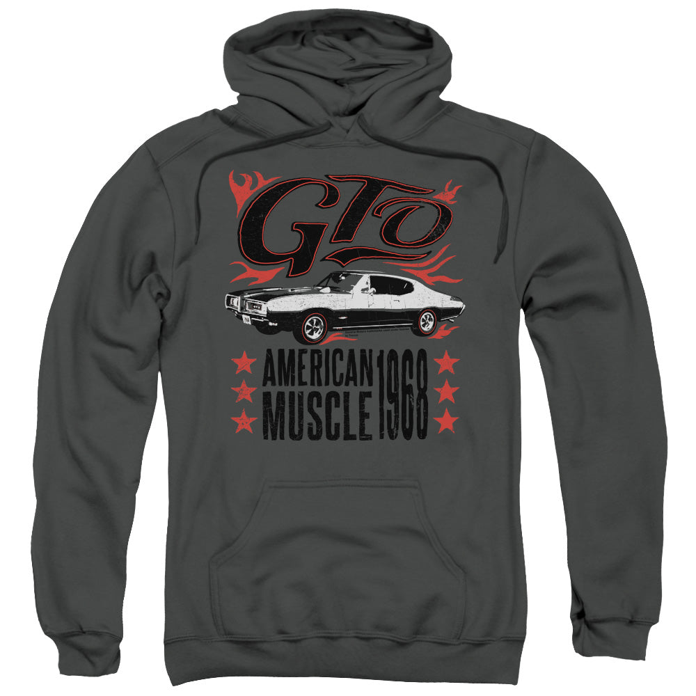 Pontiac Gto Flames Mens Hoodie Charcoal throwback retro mens classic vintage style pullover hoodie