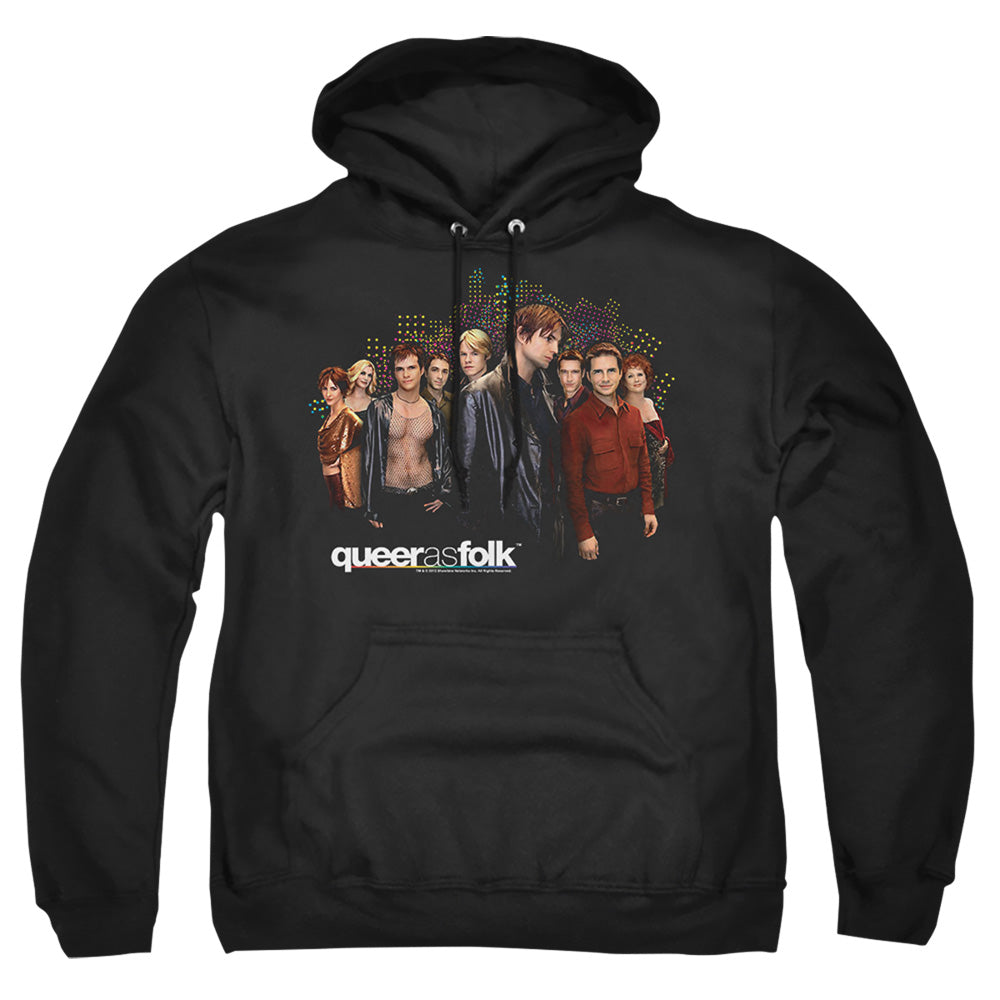 Queer As Folk Title Mens Hoodie Black throwback retro movie mens pullover hoodie
