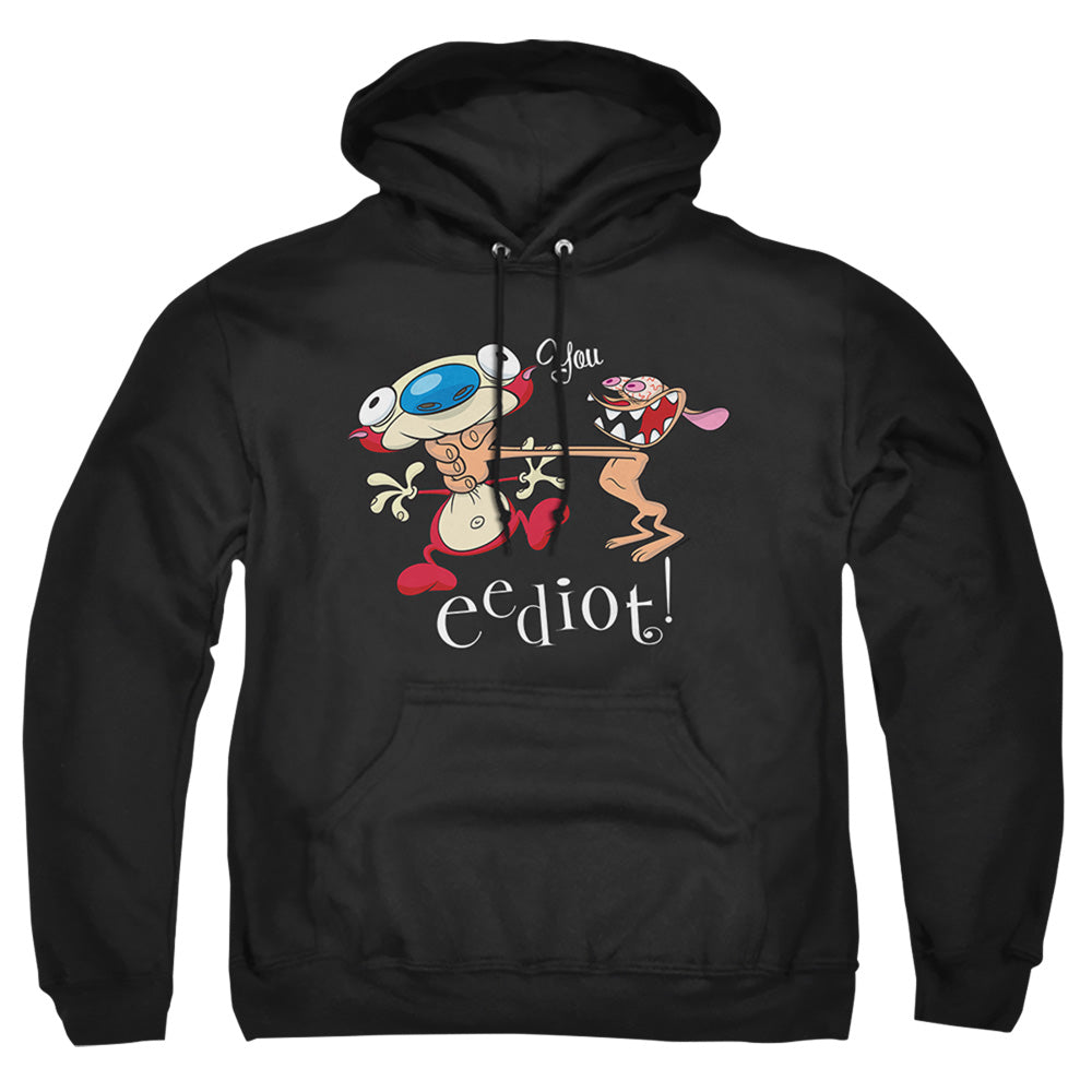 Immerse yourself in the zany and nostalgic world of '90s cartoons with our Ren and Stimpy Officially Licensed Apparel. Crafted for the ultimate fan of this iconic duo, each piece in our collection promises to transport you back to the irreverent humor and madcap adventures of Ren H??ek and Stimpson J. Cat. Our apparel is not just clothing; it's a statement, a celebration of timeless animation that inspired a generation. Made with premium materials, these garments ensure both comfort and durability, keeping you cozy whether youƒ??re lounging at home or out turning heads with your unique style. Featuring vivid graphics straight from the minds of the creators, this collection allows you to wear your nostalgia with pride. For fans who refuse to settle for anything less than original, our Ren and Stimpy apparel is officially licensed, ensuring authentic designs and a quality unmatched by imitators. Embrace the whimsical chaos and express your inner cartoon aficionado with a touch of retro flair. Choose individuality. Choose vibrant. Choose nostalgia. Choose Ren and Stimpy Officially Licensed Apparel today and let your wardrobe be a canvas of cultural appreciation.Ren And Stimpy You Eediot Mens Hoodie Black