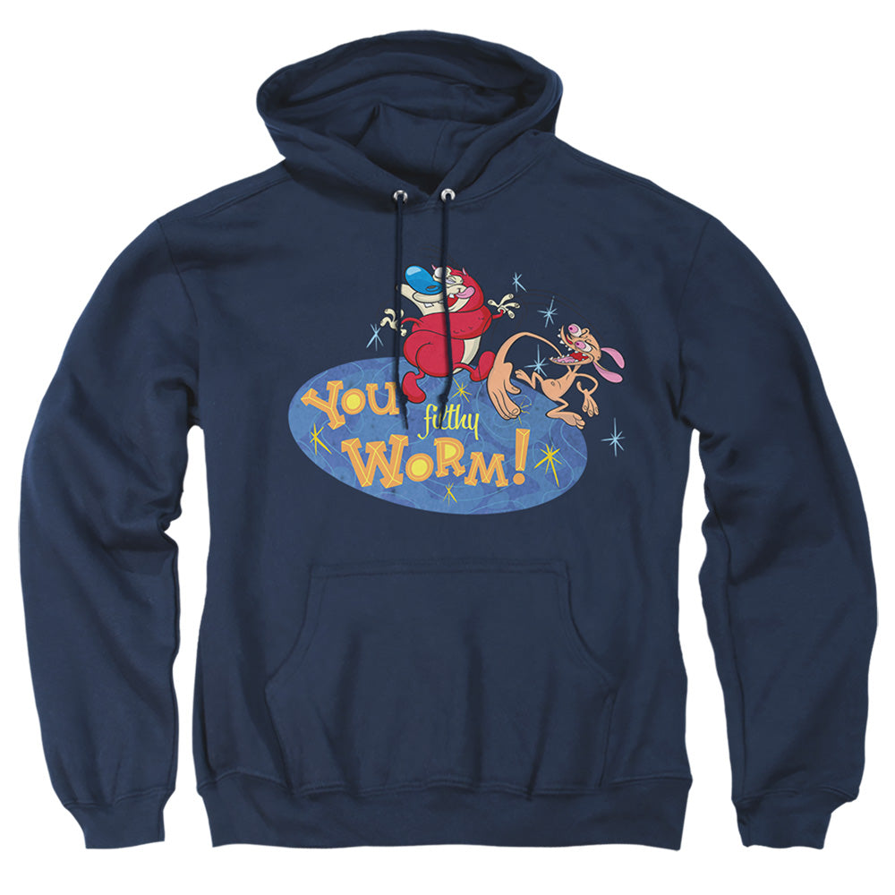 Ren And Stimpy You Filthy Worm! Mens Hoodie Navy throwback retro movie mens pullover hoodie