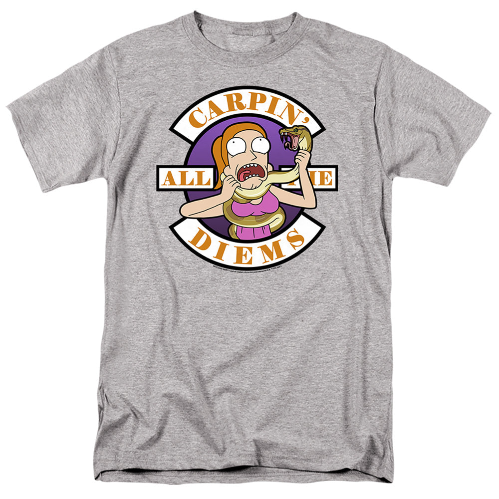 Elevate your wardrobe to a new dimension with our Rick and Morty Officially Licensed Apparel. Immerse yourself in the intergalactic adventures of your favorite dynamic duo with these meticulously crafted garments that seamlessly blend style and comfort. Each piece is an ode to the beloved animated series, featuring vivid graphics and high-quality fabrics that withstand the test of time, just like Rick's outrageous escapades. Whether you're lounging at home or exploring cosmic realms, our collection guarantees a perfect fit that makes a statement. Embrace your inner fan and turn heads in every universe with apparel that truly captures the essence of Rick and Morty. It's time to transform your style narrativeƒ??this isn't just clothing; it's a portal to endless adventures. Make every day extraordinary. Get yours now and let the multiverse know you mean cosmic business!Rick And Morty Carp En All Them Diems Mens T Shirt Athletic Heather