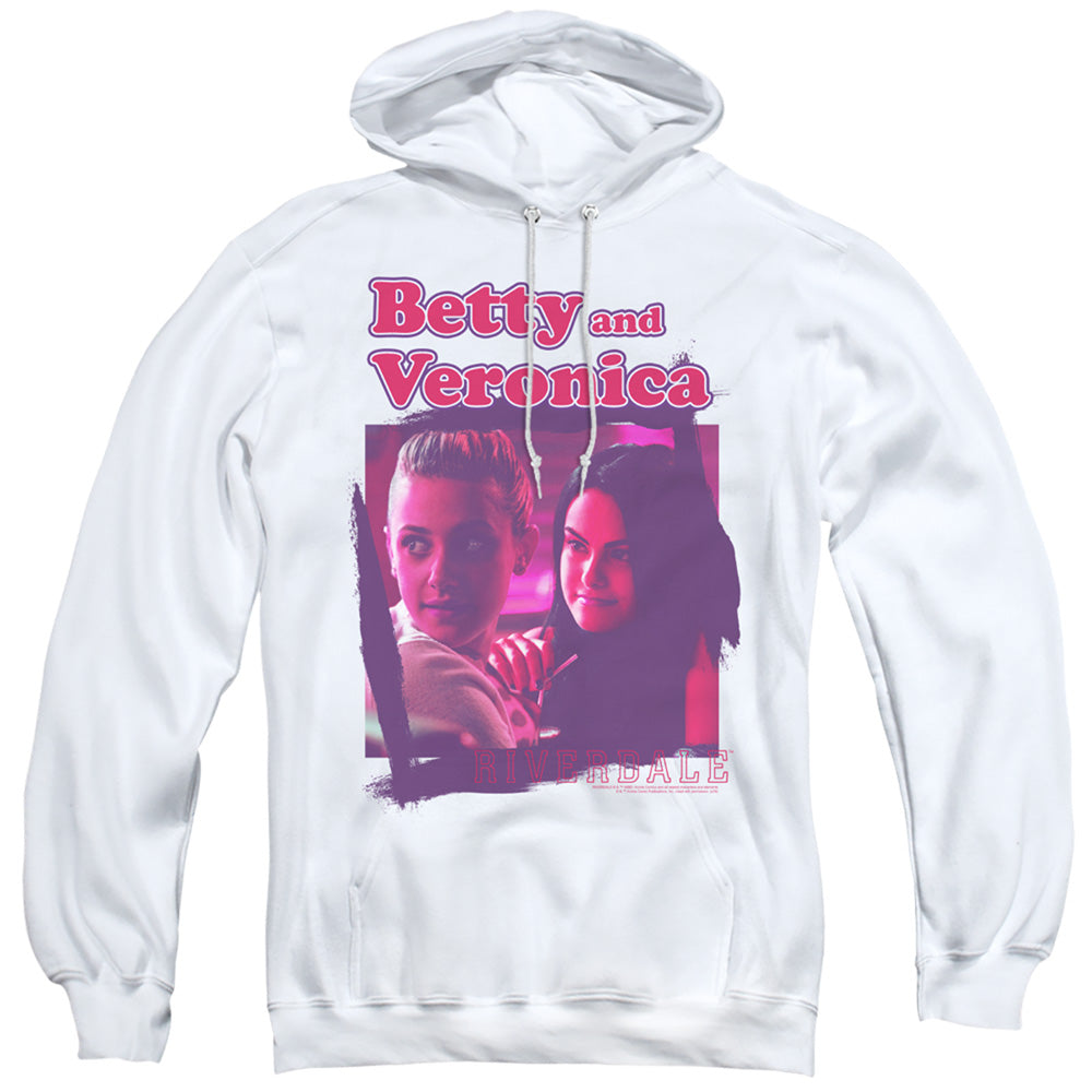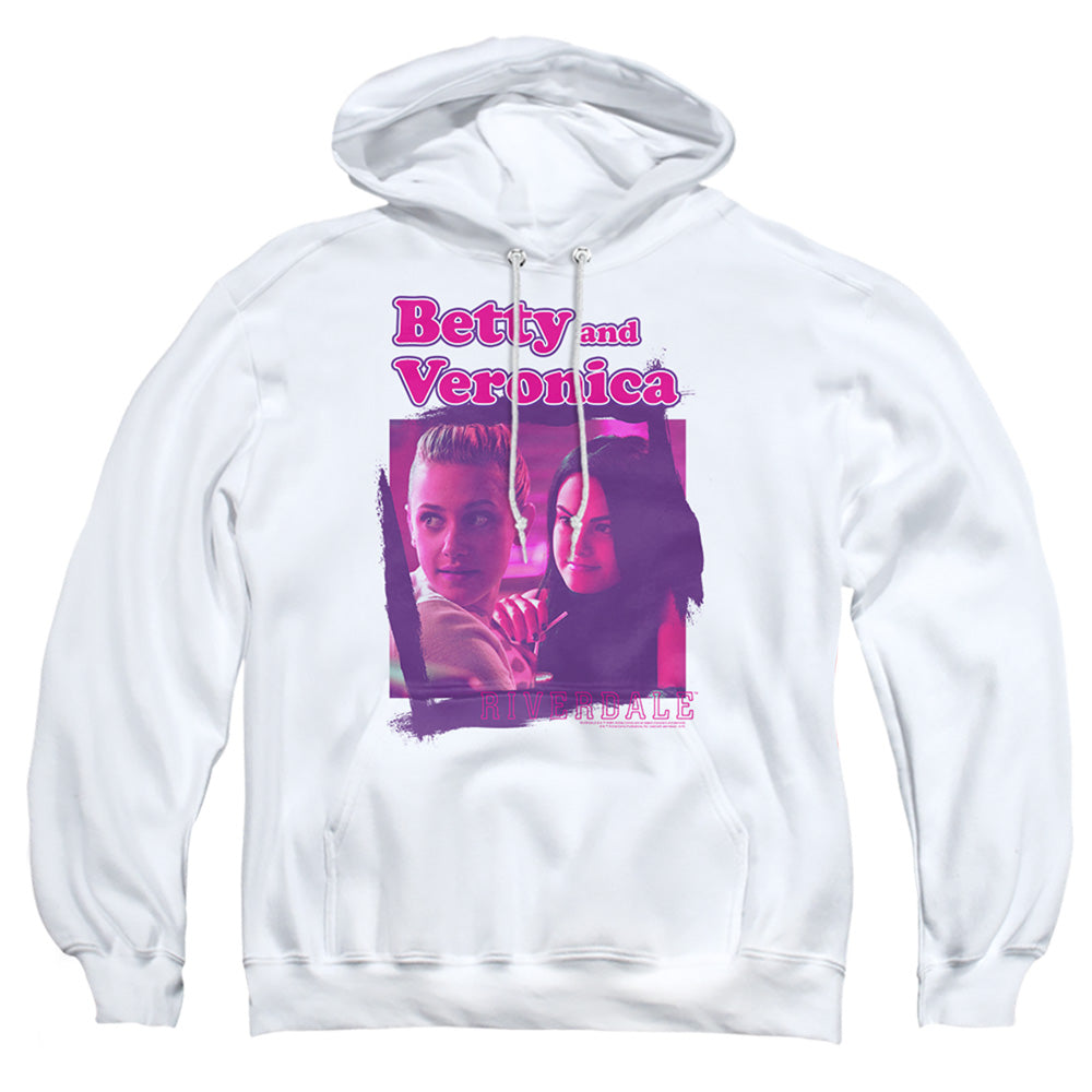 Step into the enigmatic world of Riverdale with our officially licensed apparel ƒ?? a stunning collection inspired by the riveting mystery and drama of the iconic series. Each piece is meticulously crafted to encapsulate the allure and charisma of your favorite characters, offering fans a stylish way to express their passion for this captivating show. Immerse yourself in unparalleled comfort with our premium-quality fabrics, tailored to ensure a perfect fit while radiating the essence of Riverdale's unique charm. Whether you're channeling the bold and audacious presence of Archie Andrews, the sophisticated elegance of Veronica Lodge, or the spirited grit of Betty Cooper, our exclusive apparel is designed to make a jaw-dropping statement. Don't miss the opportunity to own a piece of the phenomenon that's taken the world by storm. Elevate your wardrobe with Riverdale Officially Licensed Apparel and transform your everyday look into something truly iconic.Riverdale Betty And Veronica Mens Hoodie White
