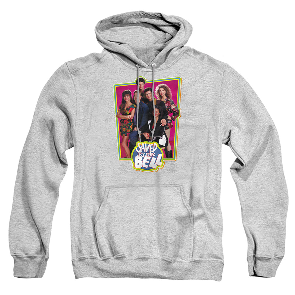 Step back into the vibrant era of the 90s with our exclusive 'Saved By The Bell' Officially Licensed Apparel, a quintessential tribute to one of the most iconic TV shows of its time. Crafted with impeccable quality and an unwavering attention to detail, each piece captures the nostalgic charm and spirited essence of Bayside High's beloved characters. Dive into a sea of resplendent colors and retro designs that evoke warm memories of carefree days, echoing the show's timeless appeal. Whether you're rewatching episodes on a cozy evening or heading out in style, our apparel lets you don the carefree, youthful vibe that defined a generation. Don't just relive the memoriesƒ??wear them. Elevate your style quotient with apparel that's as bold and vivacious as the 90s themselves. Embrace the nostalgia, embrace the trend, and make a statement with every step when you choose 'Saved By The Bell' Officially Licensed Apparel. Because classic never goes out of style.Saved By The Bell Saved Cast Mens Hoodie Athletic Heather