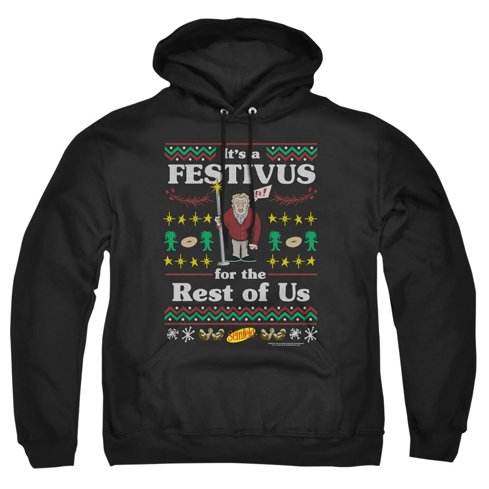 Step into a world of nostalgia with our Seinfeld Officially Licensed Apparel, where classic sitcom charm meets contemporary fashion. Perfect for die-hard fans and newcomers alike, each piece in this exclusive collection features iconic references and beloved quotes from the legendary series. Crafted with premium materials, our apparel promises unmatched comfort and style. Express your inner humorist with statement tees, cozy hoodies, and versatile accessoriesƒ??all meticulously designed to capture the essence of Seinfeldƒ??s timeless wit and wisdom. Elevate your wardrobe with attire that not only pays homage to the 'show about nothing' but also broadcasts your impeccable taste in comedy. Donƒ??t just reminisce about your favorite episodesƒ??live them, wear them, and share the laughter wherever you go. Embrace the legacy of Seinfeld and make every day a new episode in your sartorial journey.Seinfeld Festive Festivus Mens Hoodie Black