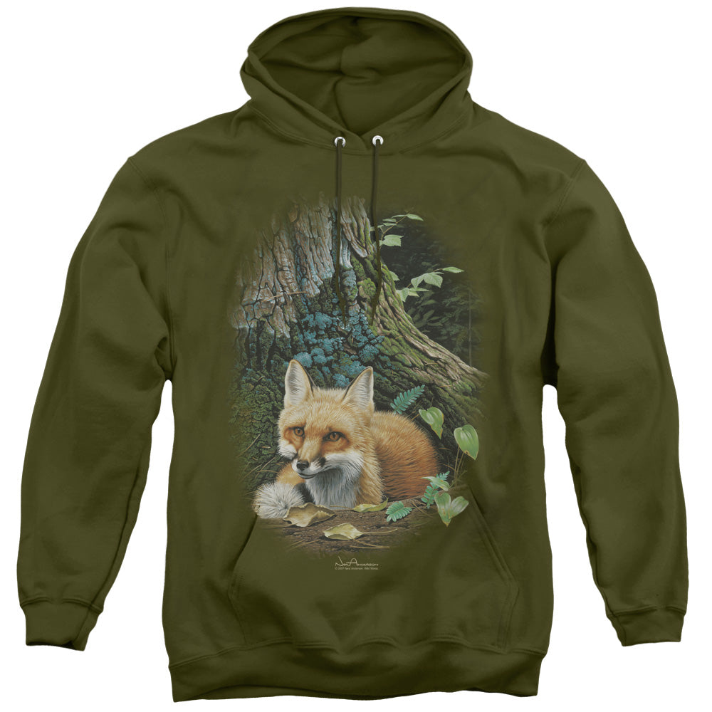 Wildlife Cozy Retreat Mens Hoodie Military Green